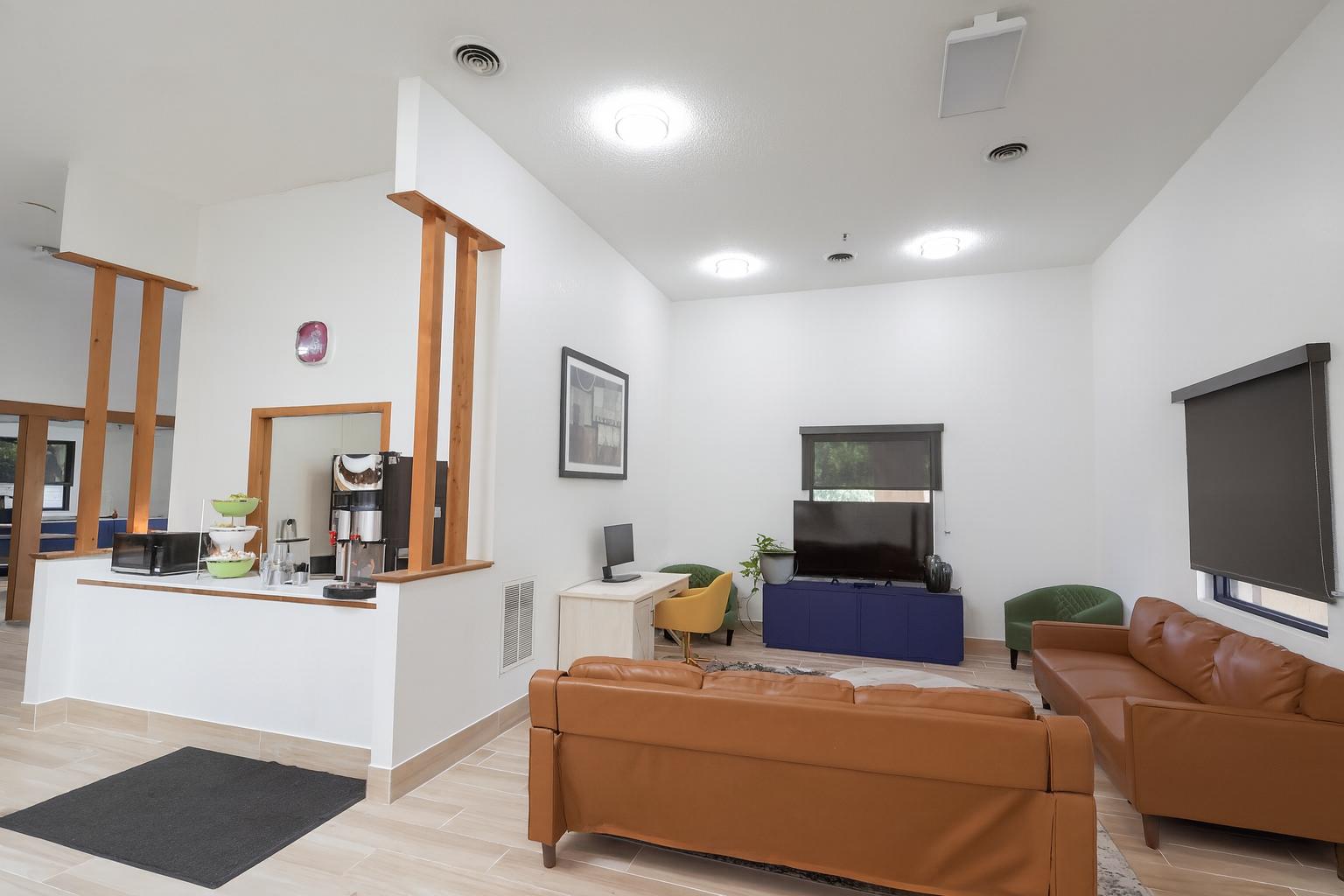 View of the spacious lobby from the front desk.